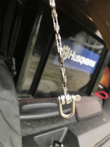 前回、不意の初陣で見事大ゴケだった対藤蔓決戦兵器(ソーチェン切っただけ)。早速、反省を生かして改良です。4mmシャックルがピッタリハマりました。また、前回のソーチェンは、カッターが三角形になっている終末期。もったいないからとケチったのが完全に…